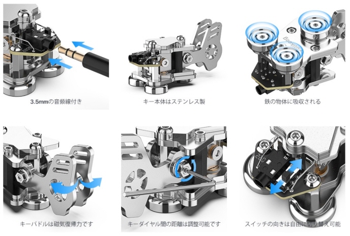 キーに取り付けられているスイッチにより、短点と長点の左右を切り替えることが可能です。