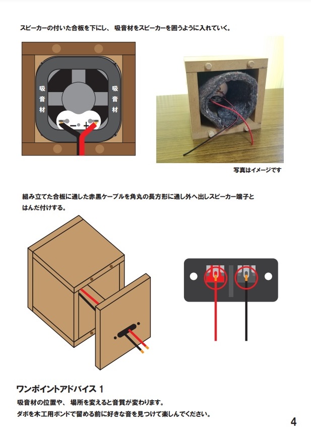 簡単に作れるかなぁ、と思って作り始めましたが、楽しみながら30分程度で完成しました。 木製パネルもダボもきちんと精度良く作られていて、大変製作しやすかったです。 私の場合は付属のスピーカーユニットを別で購入してあったユニットに入れ替えてしまったのでオリジナルの音質ではなくなりましたが、木製エンクロージャーが良くできているのでとても落ち着いた良い音で鳴ってくれます。 私はBCL用通信機につなぎましたが、AMもSSBもFMもすべていい音で聴こえます。 見た目も落ち着きがあり、受信機周辺に置いても違和感なくばっちりです。 このスピーカーはお薦めです! もう一つ欲しくなっちゃいましたが、今度はダンボールスピーカーも試したいと思っています。
