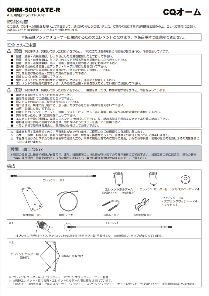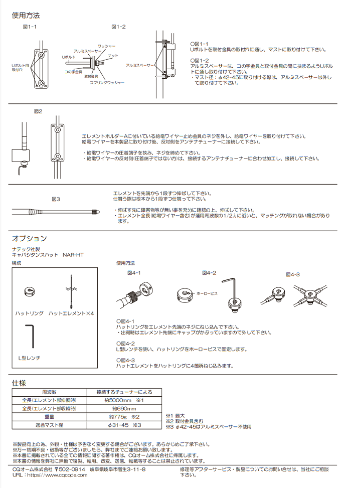 NAR-HT(NARHT) キャパシタンスハット【対応】OHM-5001ATE-R、NAR100 ※電気長を長くし打ち上げ角も変化。先端に取り付けるので、軽量の形状記憶合金製です。