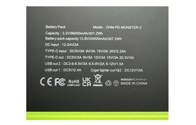 OHM-PD-MONSTER-2 50W機での運用に最適! 96000mAh/307.2whの大容量バッテリー、最新のリン酸鉄バッテリー→充電サイクルは2000回以上!(通常は500回ほど)だから毎日使っても5年以上!内部セルも独自設定。熱や衝撃にも強く安全(OHMPDMONSTER2)【特別ステージ価格】
