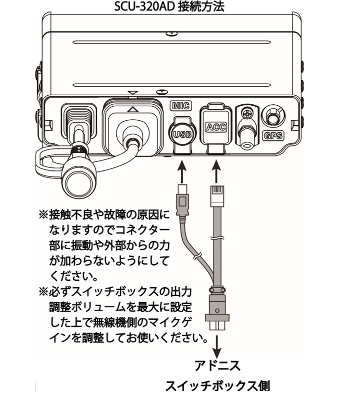 ● 使用方法:アドニス側のスイッチボックスの出力調整ボリュームを最大に設定した上で使用