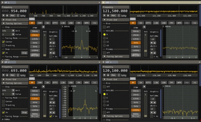 VHFチャンネル:AM, CW/CWr, RTTY/RTTYr, LSB, USB, FM, WFM, DAB+, IQ