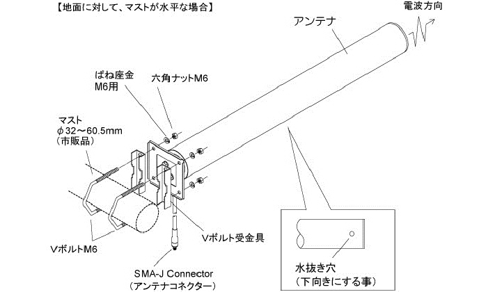 ●取付金具は垂直・水平のマストに取付可能なセミユニバーサル方式となっております。