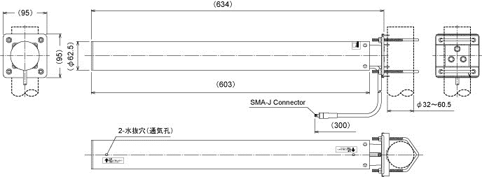 外観寸法 約 φ62.5×603 mm(アンテナ部、突起部除く)