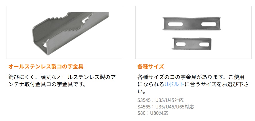 U80(2ヶ入) Uボルト 適合パイプ径:φ40~80 ボルト径:M8 アンテナ取付金具 (U-80)【ゆ】