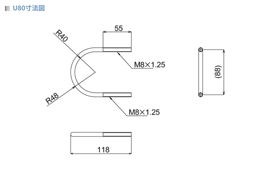 S80(2ヶ入) コの字金具 適合パイプ径:φ40~80 対応ボルト:M8 Uボルト:U80対応(S-80)【ゆ】