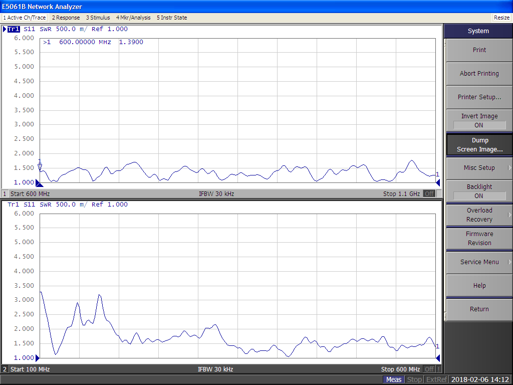 120MHz以上の周波数帯でV.S.W.R.:3.0以下。特に350MHz以上の周波数帯ではV.S.W.R.:2.0以下になっています。