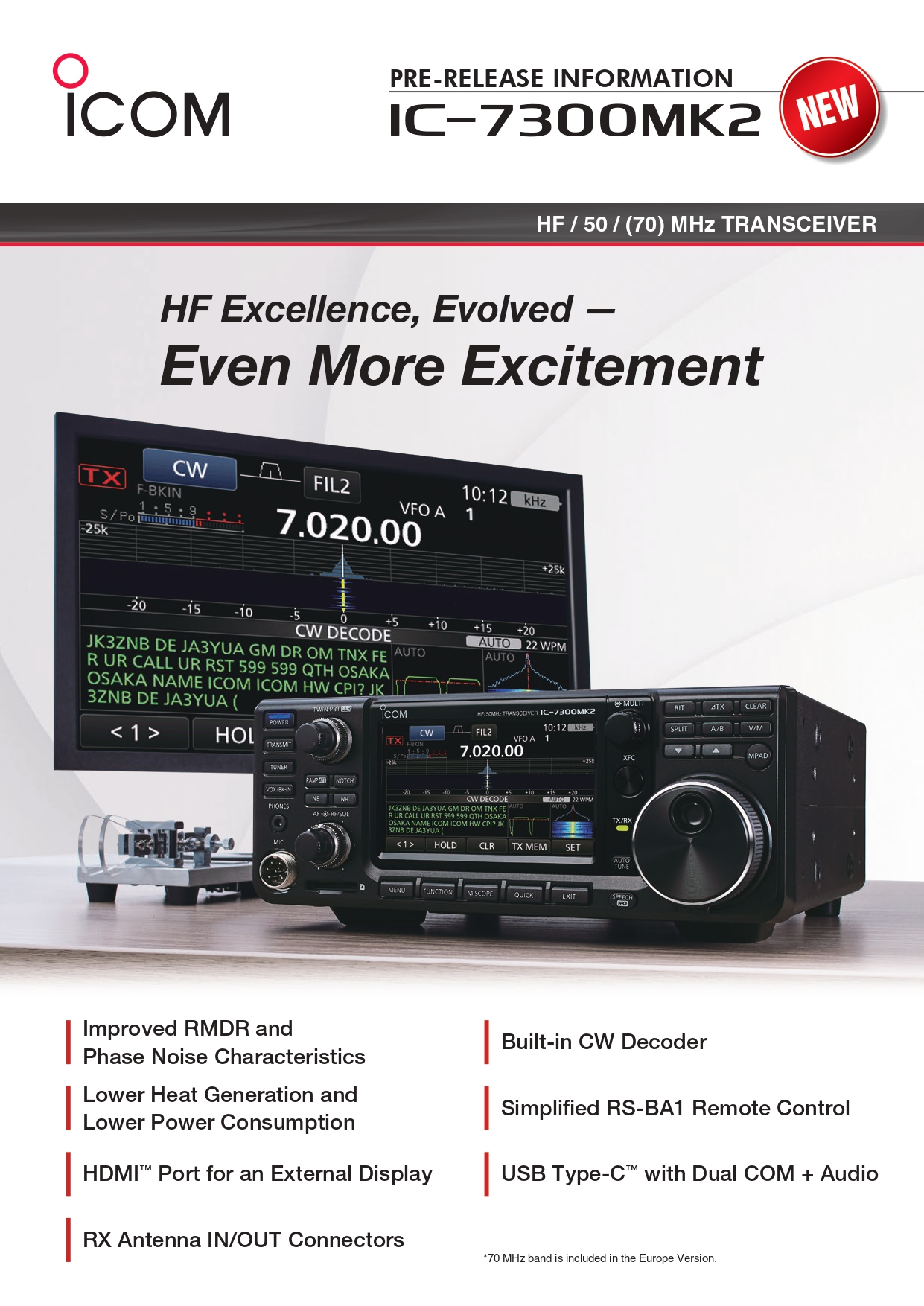 ・アイコム初のCWデコーダーを搭載。CW初心者の運用をサポート※1。