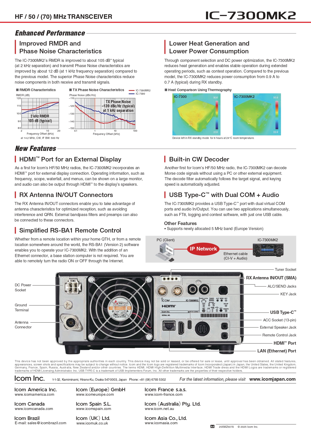 ・従来機のIC-7300からRMDR/フェーズノイズ特性が向上。