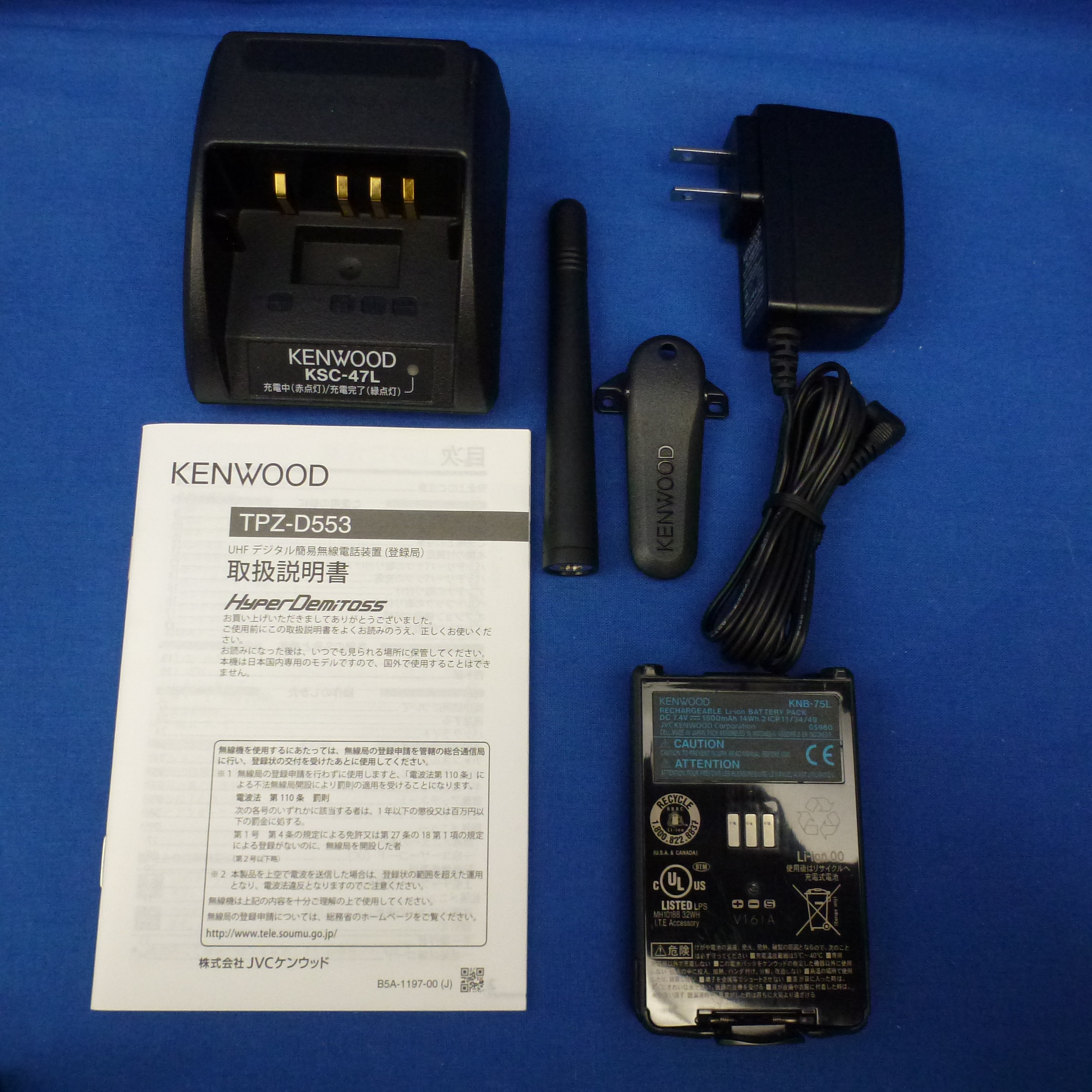 【中古品】TPZ-D553 (TPZD553) 程度【C】附属品【箱/充電スタンド/充電器/バッテリー/アンテナ/ベルトクリップ/取扱説明書】備考【新スプリアス/バッテリーケースにキズあり/バッテリー取り外しフラップ破損あり(取り付け自体は可能)/30ch機】