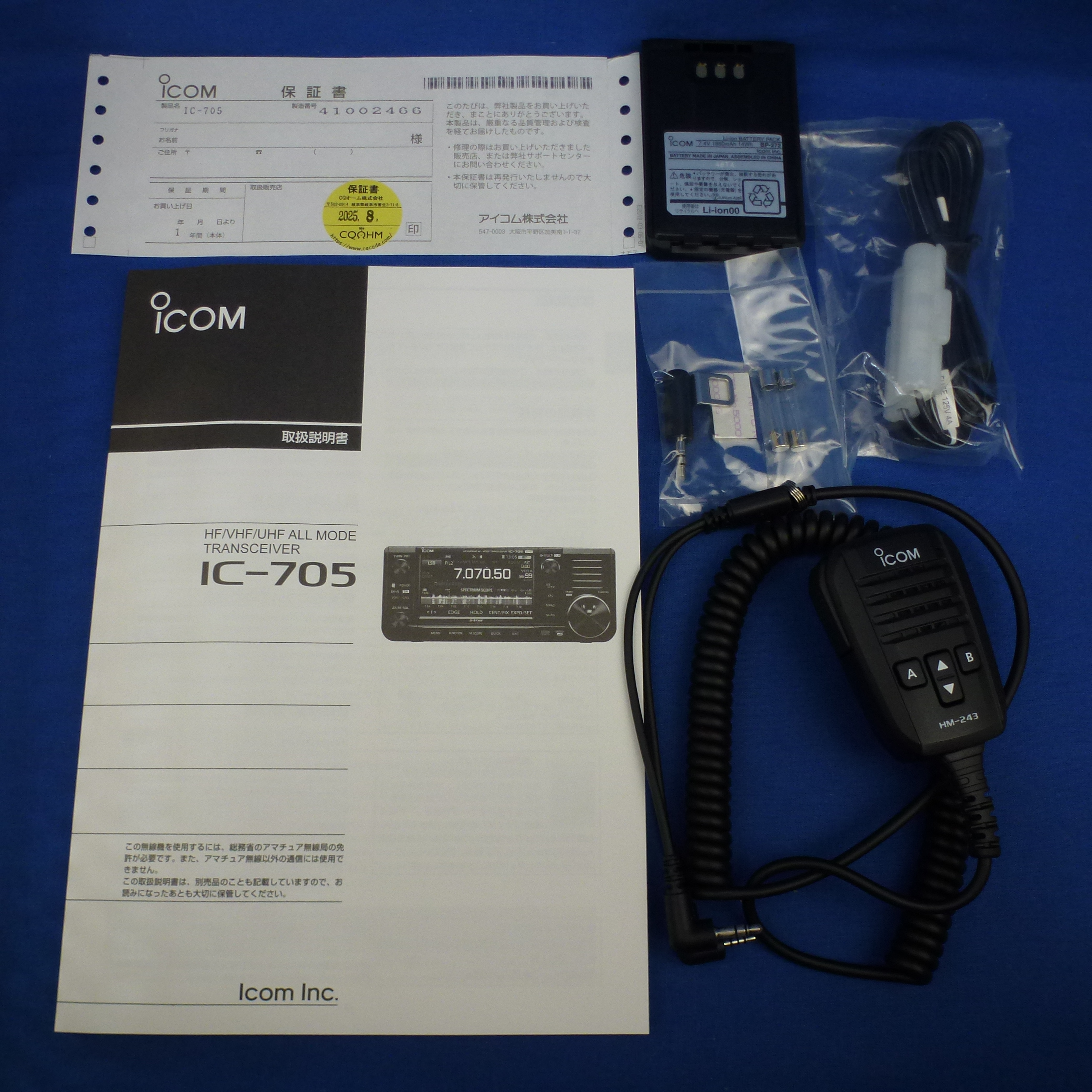 【中古品】IC-705/ 手ぬぐい (IC705/ 手ぬぐい) 程度【A】附属品【箱/電源ケーブル/バッテリー/マイク/ヒューズ等/取扱説明書/保証書】備考【新スプリアス/未使用品と思われる/箱傷みあり/2026年8月まで保証あり/CQオームオリジナルおーむくん総柄手ぬぐいプレゼント】初回価格から5%OFF!