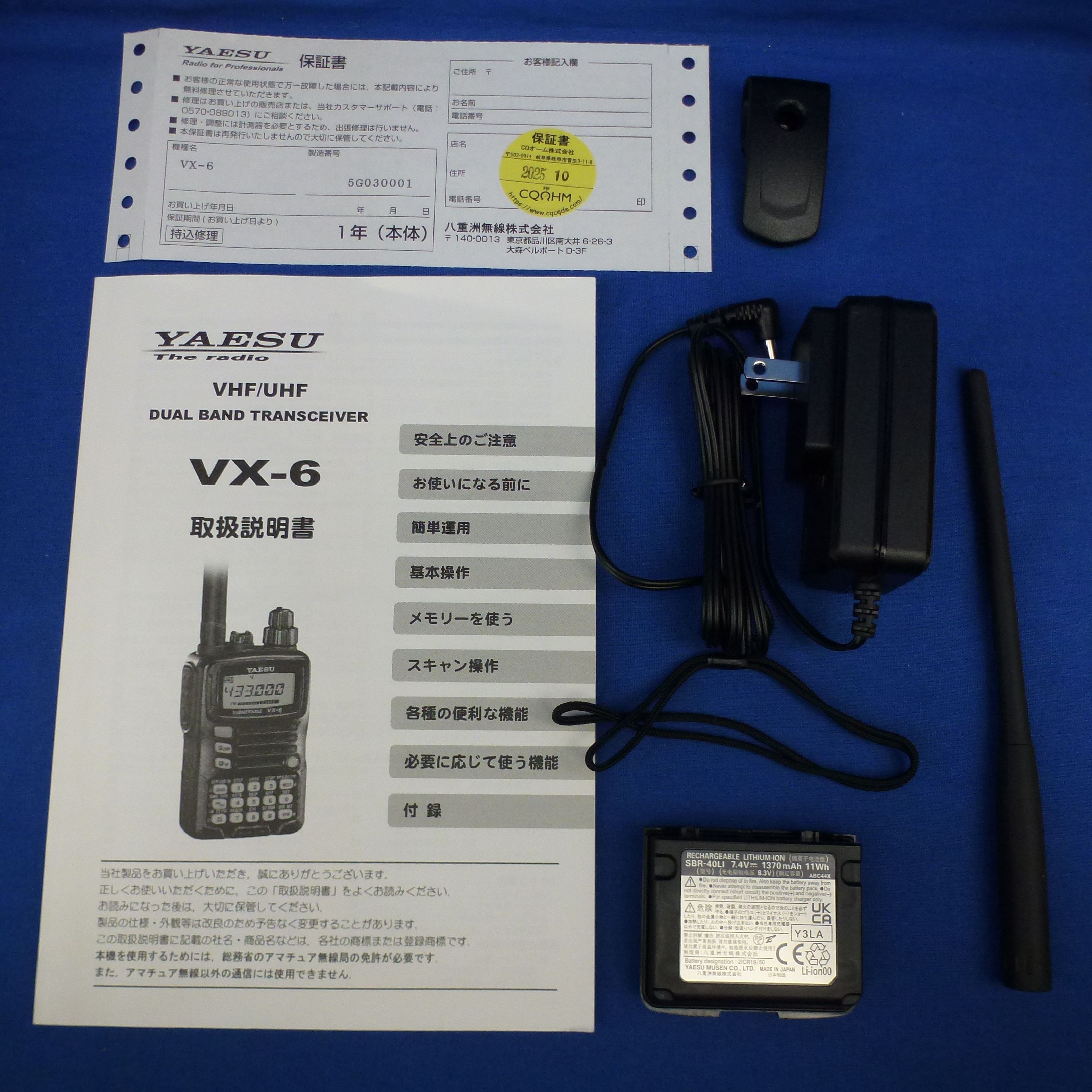 【中古品】VX-6 (VX6) 程度【B】附属品【箱/充電器/バッテリー/アンテナ/ハンドストラップ/ベルトクリップ/取扱説明書/保証書】備考【新スプリアス/取扱説明書マーカーペン記入あり/2026年10月まで保証あり】初回価格から5%OFF!