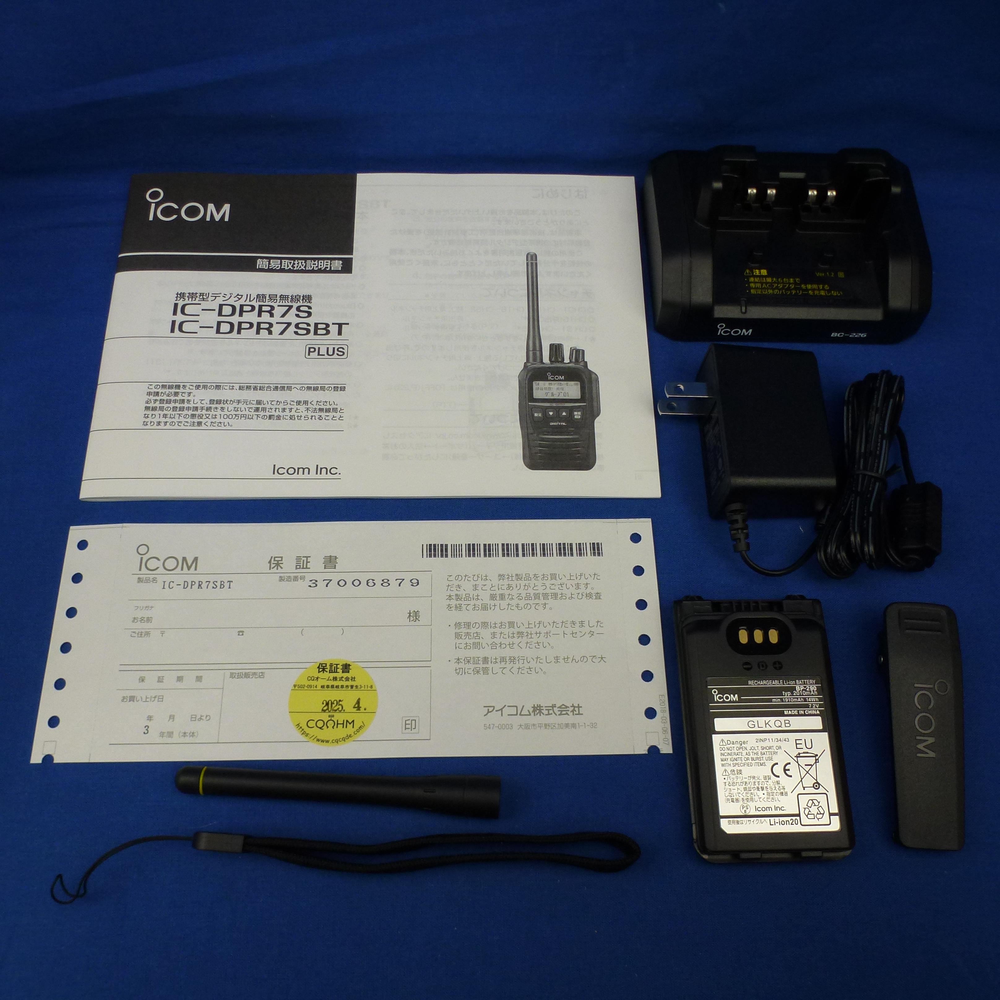 【中古品】IC-DPR7SBT PLUS (ICDPR7SBT PLUS) 程度【B】附属品【箱/充電スタンド/充電器/バッテリー/アンテナ/ハンドストラップ/ベルトクリップ/取扱説明書/保証書】備考【新スプリアス/2028年4月まで保証あり】
