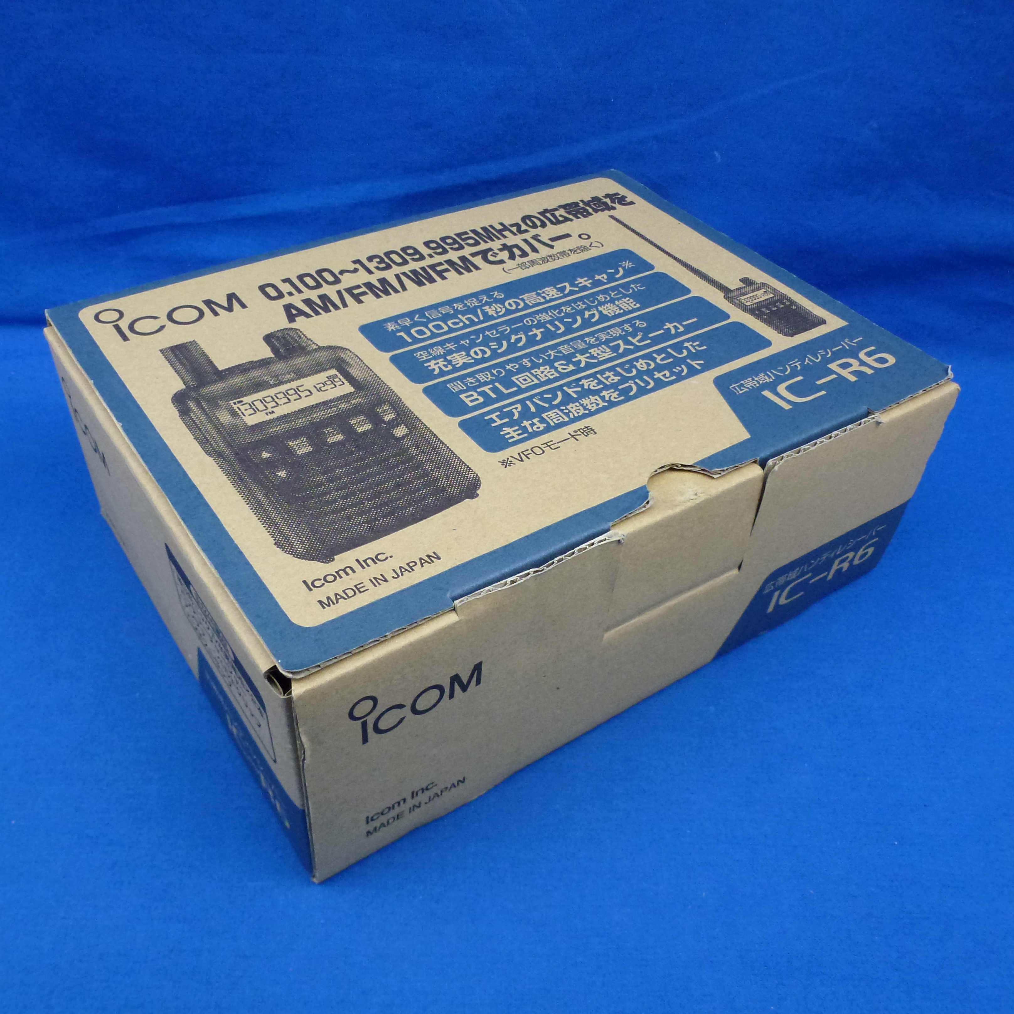 【中古品】IC-R6 (ICR6) 程度【C】附属品【箱/充電器/ニッケル水素電池/アンテナ/ハンドストラップ/ベルトクリップ】備考【箱中仕切りなし/取扱説明書汚れあり/受信改造済み(受信周波数拡張)】