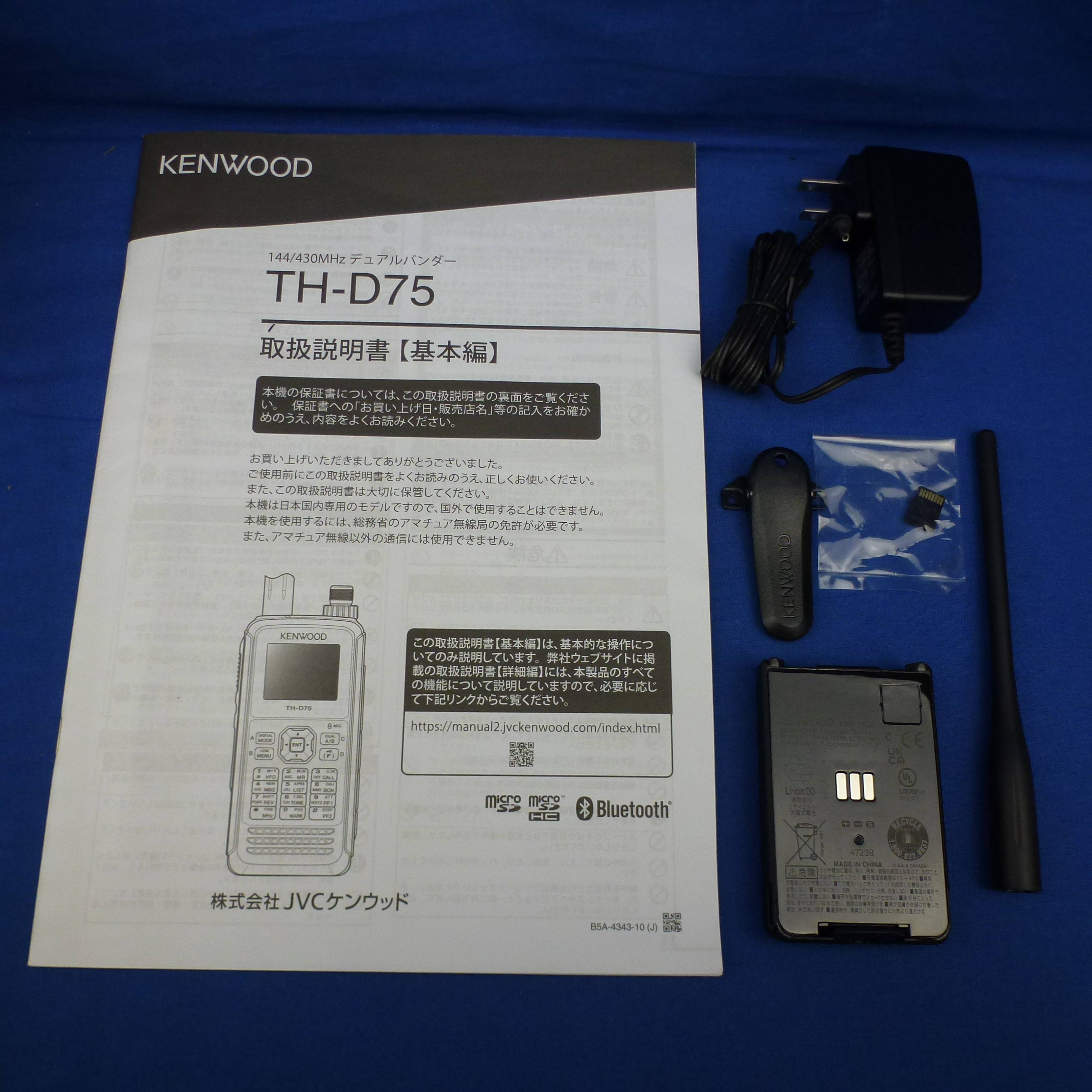 【中古品】TH-D75 / 手ぬぐい (THD75 / 手ぬぐい) 程度【C】附属品【箱/充電器/バッテリー/アンテナ/ベルトクリップ/取扱説明書/マイクロSDカード】備考【新スプリアス/受信改造済みモデル/CQオームオリジナルおーむくん総柄手ぬぐいプレゼント】