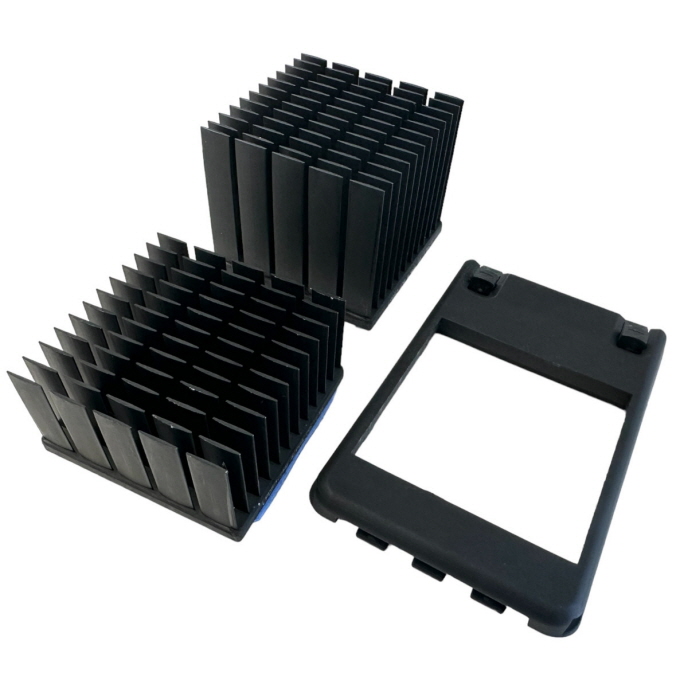【特徴5】  ヒートシンクパーツは簡単着脱。正方形なので90度フィンの向きを変更できます。縦置き・横置きに応じて、風通しの良い方向へ向けることで効率のよい冷却を狙えます。