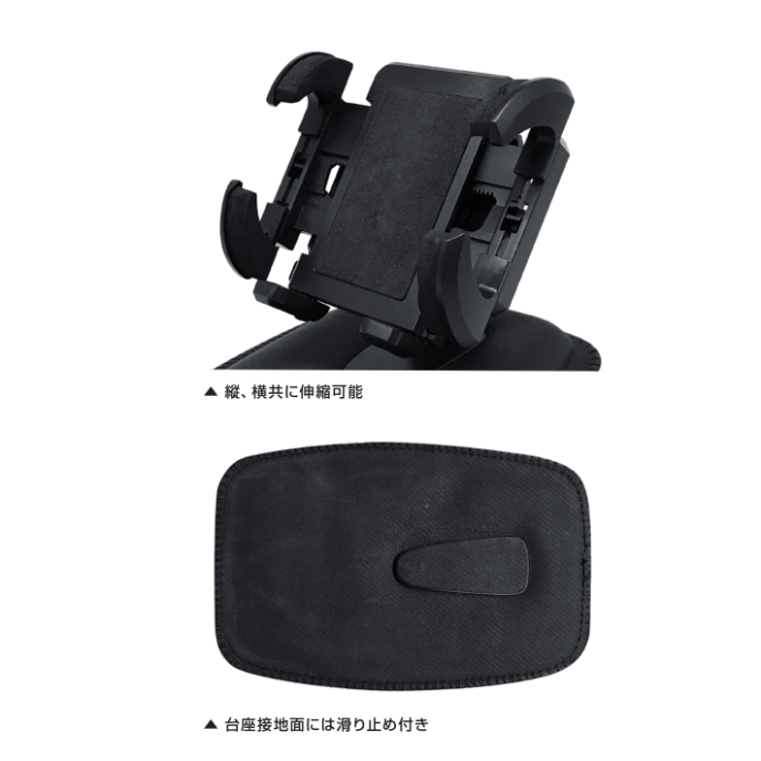 低重心と台座接地面のすべり止めで若干の曲面にもフィット。