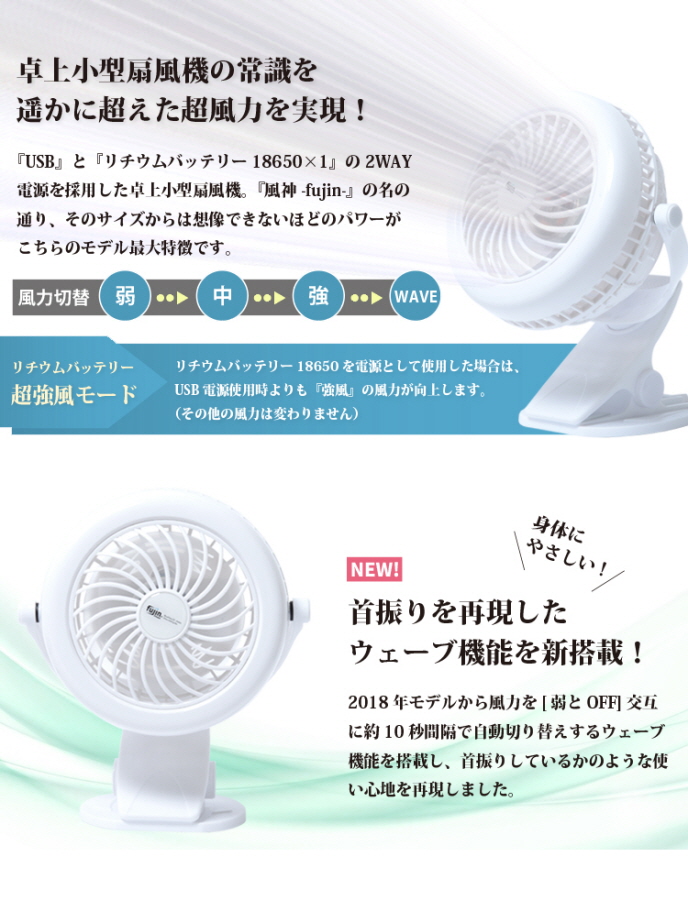 商品名 卓上&クリップ式ULTRA FAN- fujin wave-