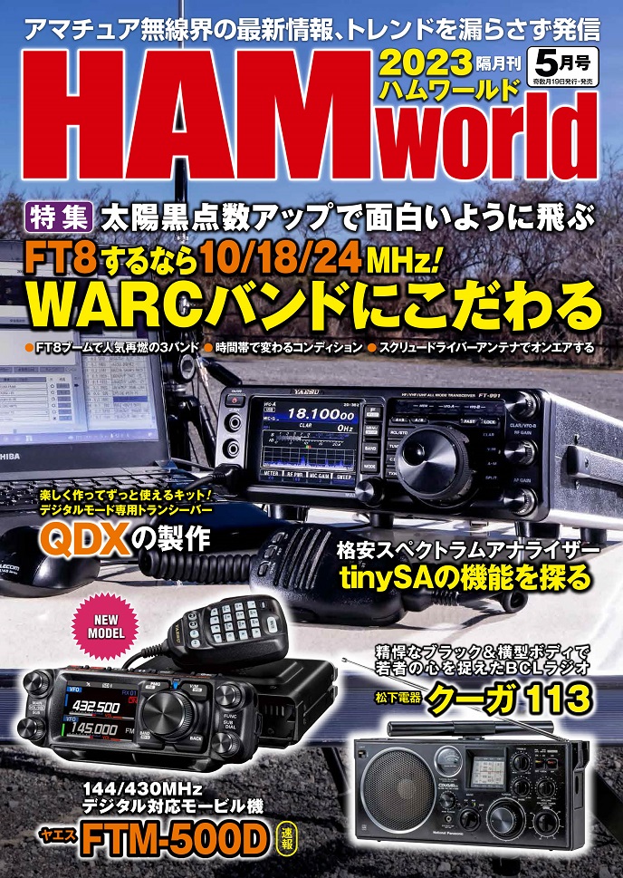 【生産終了・完売】HAM World 2023年5月号 太陽黒点数アップで面白いように飛ぶ!FT8するなら10/18/24MHz!WARCバンドにこだわる!(ハムワールド)【ゆ】