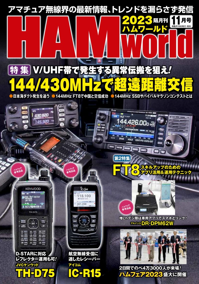 【生産終了・完売】HAM world 2023年11月号 V/UHF帯で発生する異常伝搬を狙え!144/430MHzで超遠距離更新(ハムワールド)【ゆ】