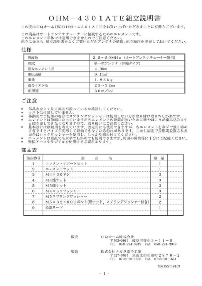 しかし、ナガラ電子さんは、信頼の大型アンテナメーカーだから、その点は安心。4301は、ナガラ電子さんのアンテナと同じパーツから出来ています。