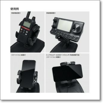 【生産終了・完売】DEK-500 デスクトップ無線機ホルダー実物触ってみました。砂袋のような土台で、ある程度傾斜がついた場所でも、どかっと置いたら、ずれません。自宅用の卓上でも、車載のダッシュボード・グローブボックス上でも使えそうですね。(DEK500)